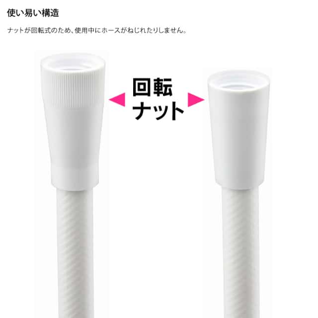 ・シャワーヘッド側の金具が回転するので、ホースのねじれを防ぎます。
