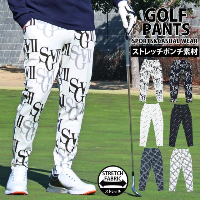 M~XXL 新作 ゴルフパンツ メンズ ゴルフウェア ストレッチポンチ 細身 スポーツ 大きいサイズ GIORNO SEVEN ジョルノセブン 総柄ロゴ おしゃれ 春夏 秋冬 送料無料 ゆうパケ