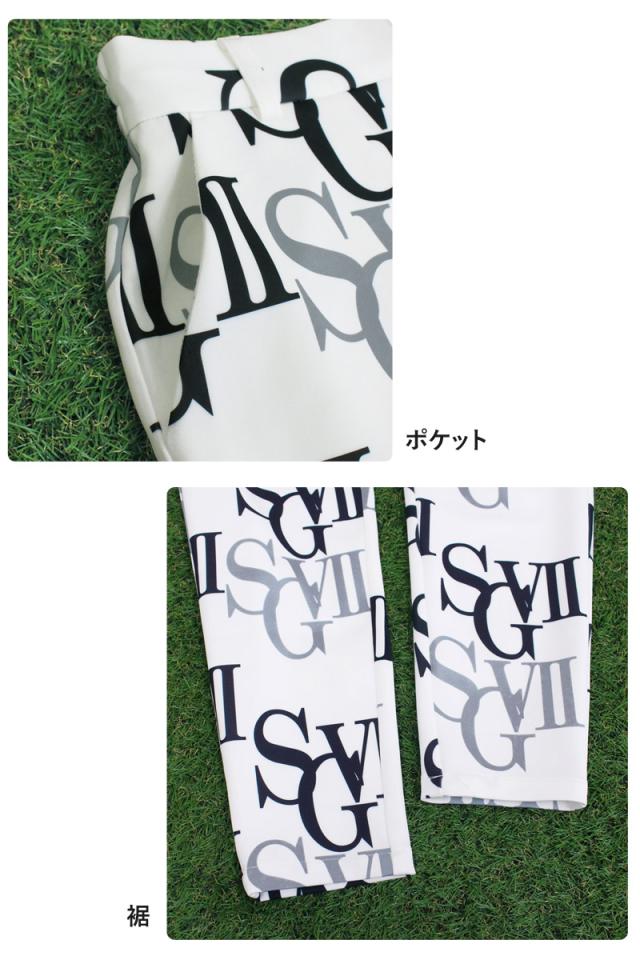 ブランドロゴを総柄プリントしたゴルフパンツ。
