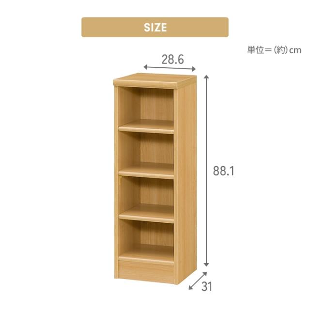 キーワード: 本棚 4段 ブックシェルフ 幅29 高さ88 収納棚 フリーラック 多目的ラック 漫画 コミック 本収納 小物置き ディスプレイ オープンラック ウッドラック マガジンラック コミックラック ディスプレイラック 壁面収納 リビング収納 収納ケース 移動棚 可動棚 大容量 便利 ナチュラル シンプル