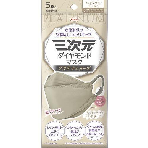 三次元ダイヤモンドマスク プラチナシリーズ フリーサイズ シャンパンゴールド 【5枚入】(興和)