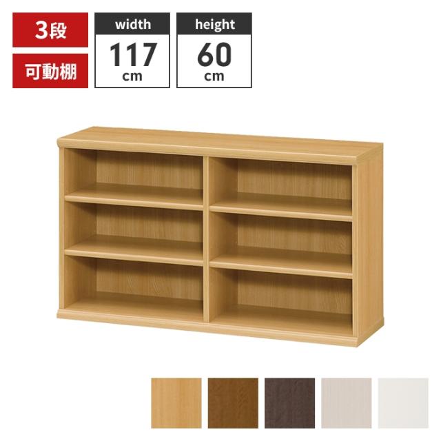 本棚 3段 ブックシェルフ 幅117 高さ60 収納棚 フリーラック 多目的ラック 漫画 コミック 本収納 小物置き ディスプレイ