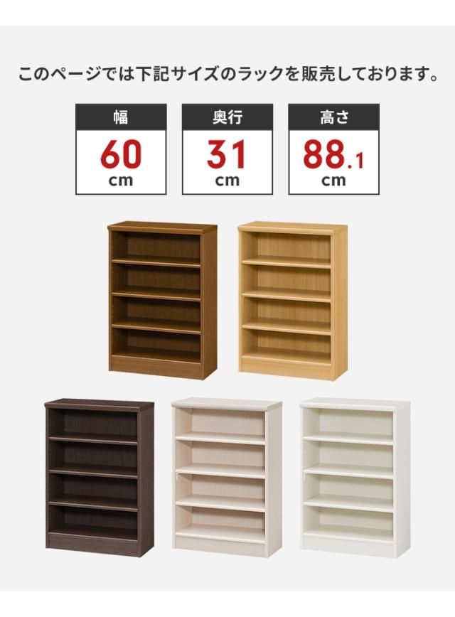本棚 4段 ブックシェルフ 幅60 高さ88 収納棚 フリーラック 多目的ラック 漫画 コミック 本収納 小物置き ディスプレイ