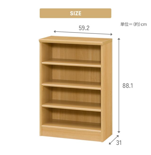 キーワード: 本棚 4段 ブックシェルフ 幅60 高さ88 収納棚 フリーラック 多目的ラック 漫画 コミック 本収納 小物置き ディスプレイ オープンラック ウッドラック マガジンラック コミックラック ディスプレイラック 壁面収納 リビング収納 収納ケース 移動棚 可動棚 大容量 便利 ナチュラル シンプル
