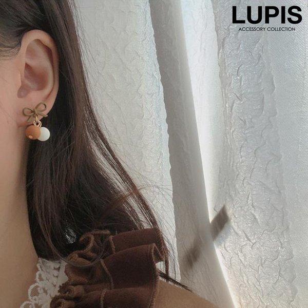 イヤリング ノンホールピアス レディース 樹脂 リボン ボール マットカラー 大人かわいい 揺れる 小さめ ワンポイント LUPIS ルピス