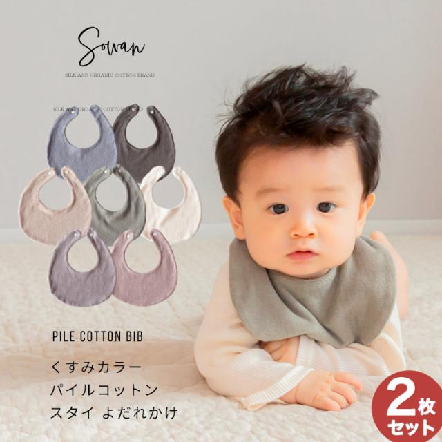 2枚セット くすみカラーパイルコットン よだれかけ スタイ おしゃれ 男の子 女の子 タオル地 お宮参り ベビー 出産祝い 赤ちゃん ビブ ギフト セット 食事 保育園