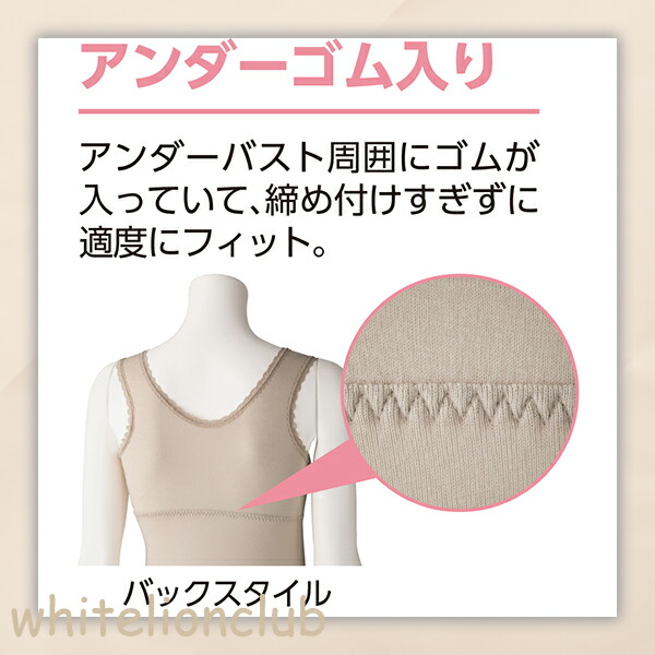 バストをやさしく包み、また繊維の伸びを防ぎます。