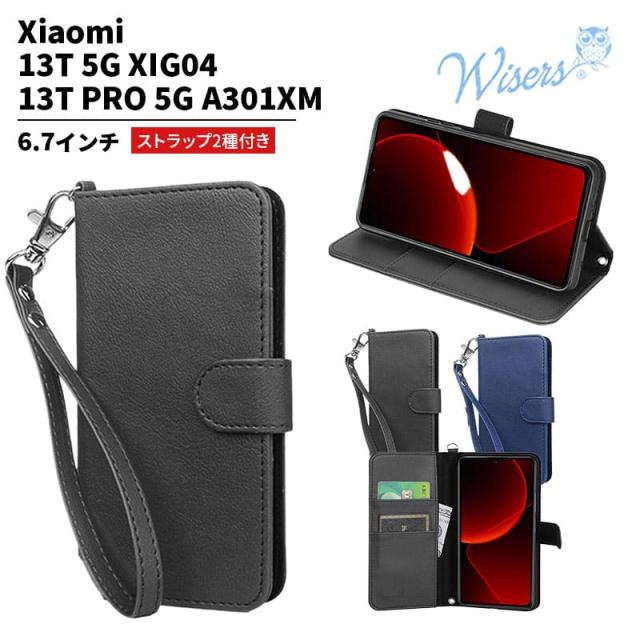 wisers Xiaomi 13T 13T Pro対応 手帳型スマホケース (全2色) 牛革調PUレザー (カードホルダー/スタンド機能付き) ストラップ 2種付き ( ハンドストラップ / ネックストラップ ) 2023年 新型