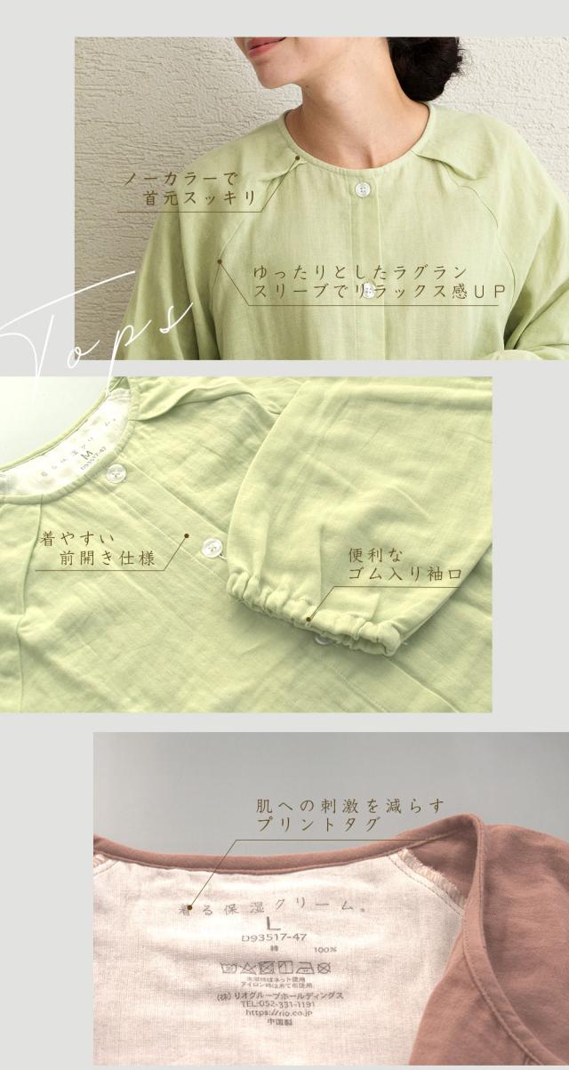 | 品名 | 着る保湿クリーム 前明ラグラン袖スリーピングウェア |