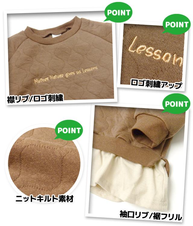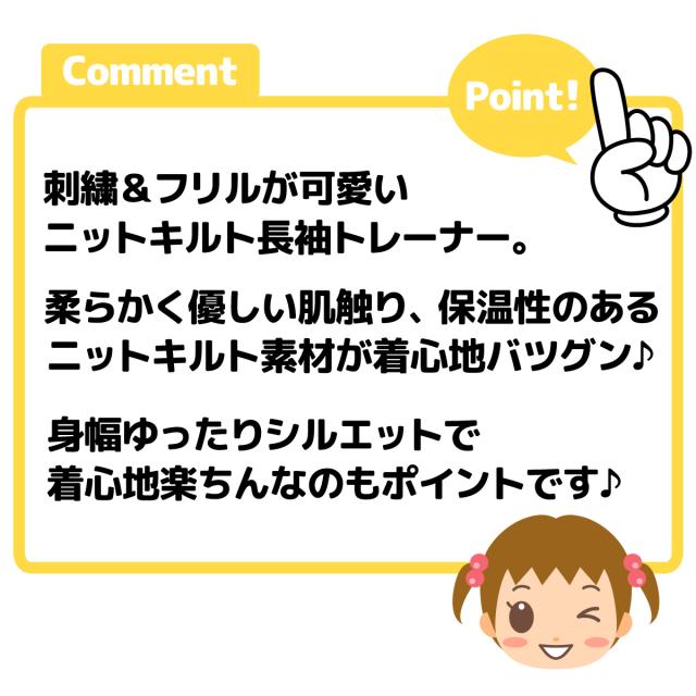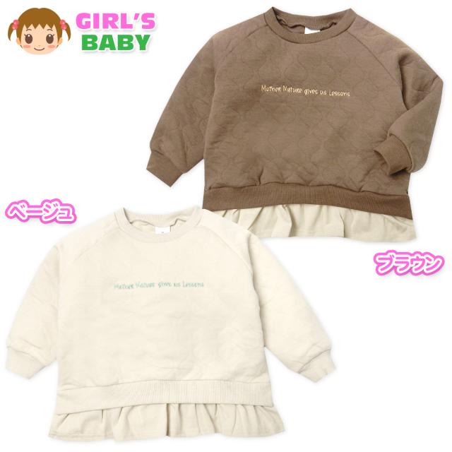 【送料無料】女児 ベビー 二ッキルト 長袖 トレーナー あったか 保温 刺繍 裾フリル ゆったり ベビー服 女の子 jt-0280【メール便対応】