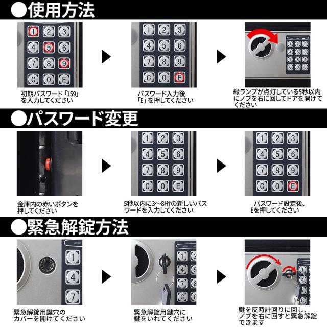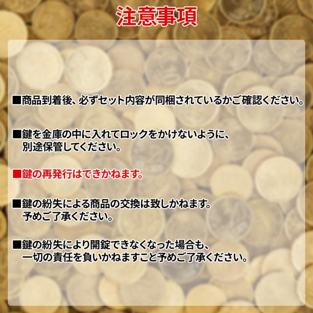 ・鍵を金庫の中に入れてロックをかけないように、別途保管してください。
