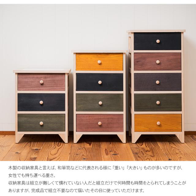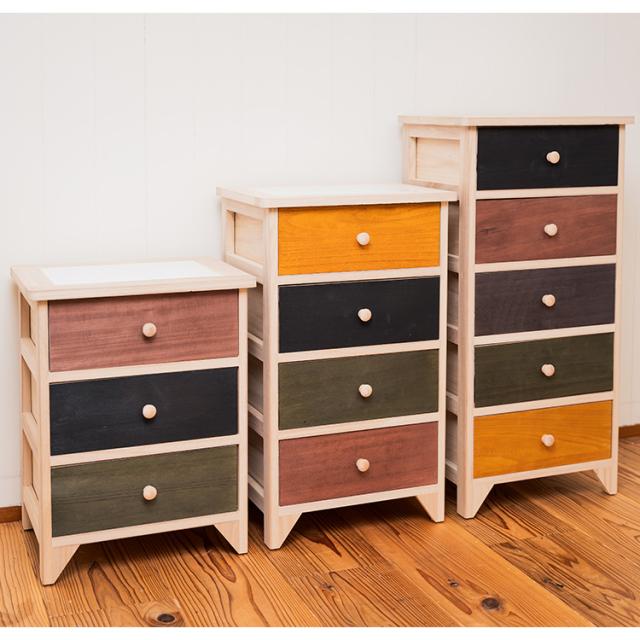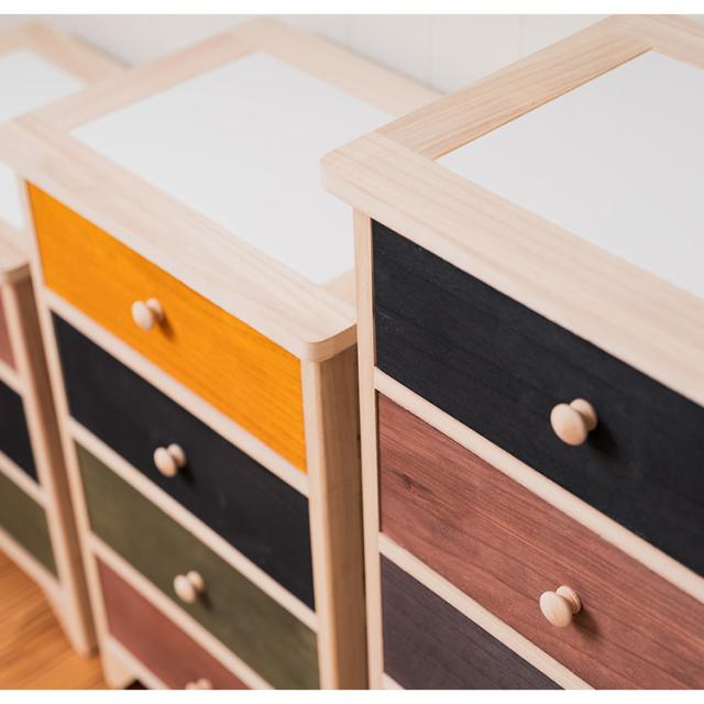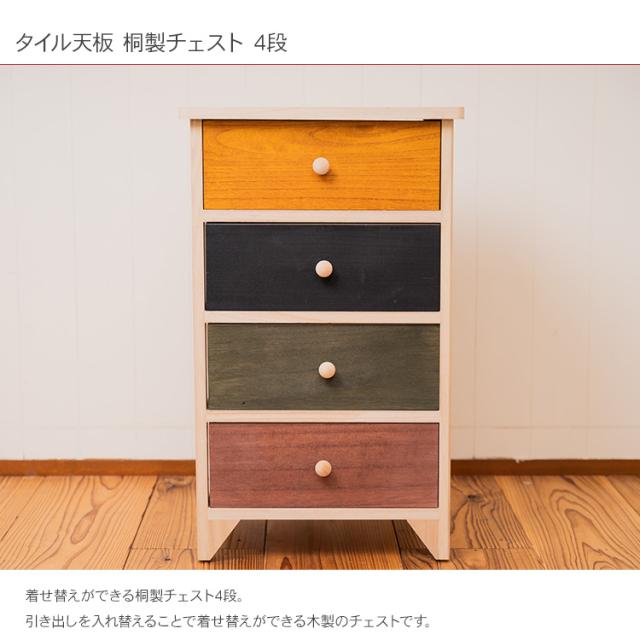 着せ替えができるタイル天板の桐製カラフルチェスト4段