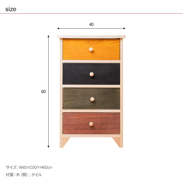 タイル天板 桐製チェスト 4段 EF-SR42-4 収納ボックス 収納ケース 桐箱 引き出し 木製 チェスト 北欧 インテリア 幅40 4段 おしゃれ ナチュラル シンプル カラフル 子供部屋 リビング 寝室 キッチン