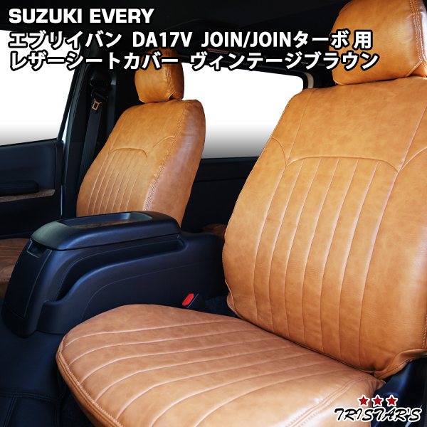 エブリイバン DA17V JOIN / JOINターボ用 ヴィンテージ ブラウン レザー シートカバー ヘッドレスト別体型 1557