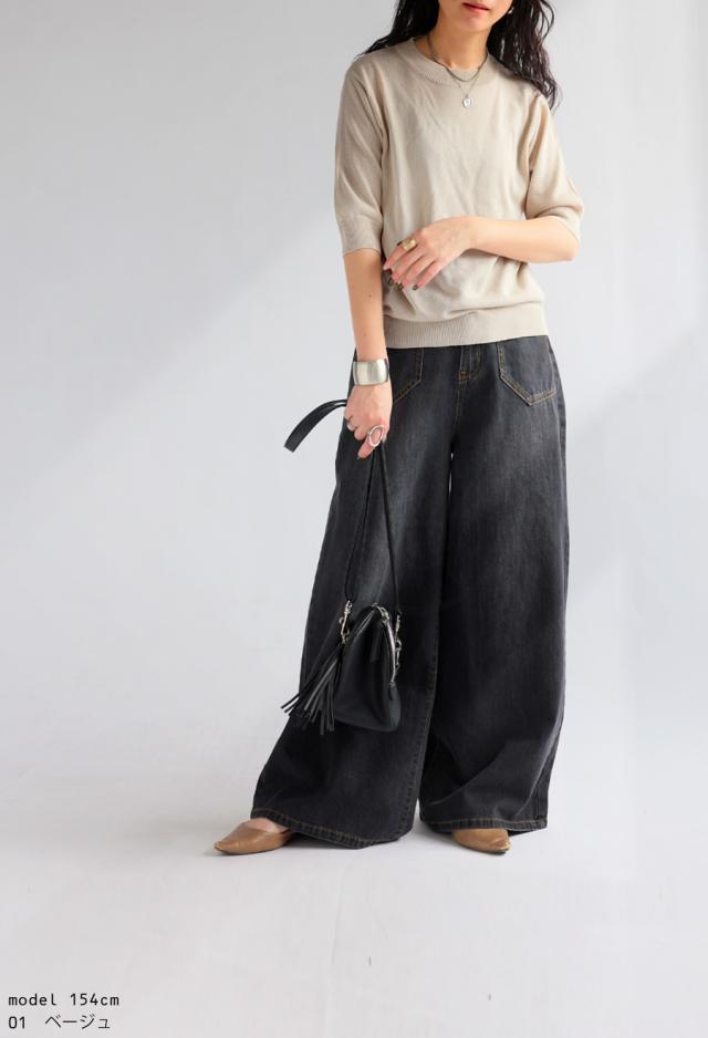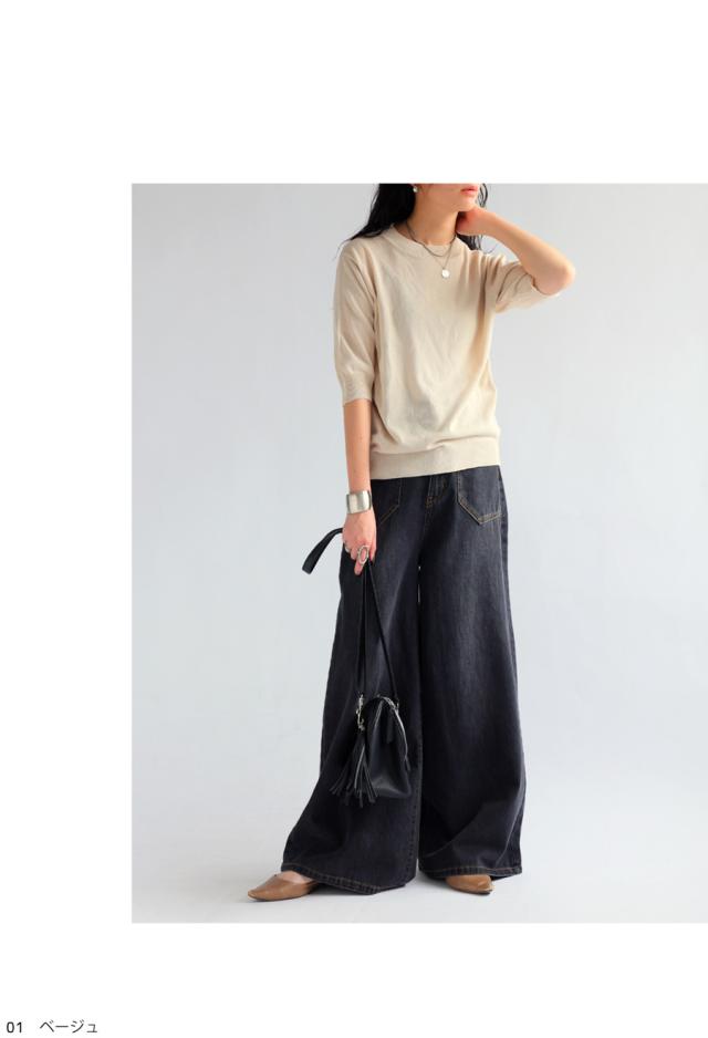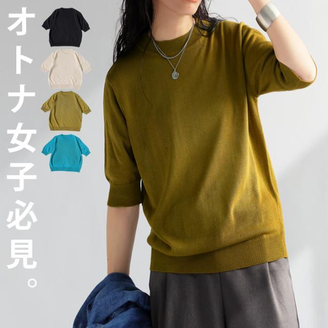 GW何着る?対象商品最大半額!! サマーニット ニット ニット レディース トップス 半袖 無地 ・(80)メール便可