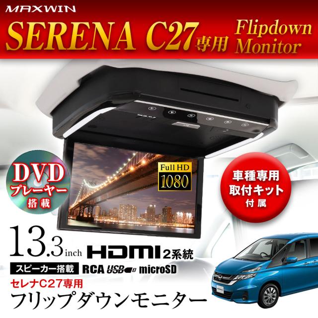 フリップダウンモニター 13.3インチ セレナ C27 GC27 GNC27 GFC27 GFNC27 取付キットセット FLD1333 MAXWIN