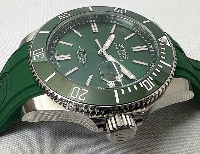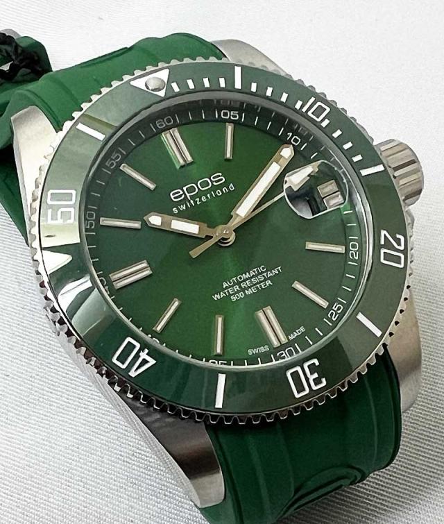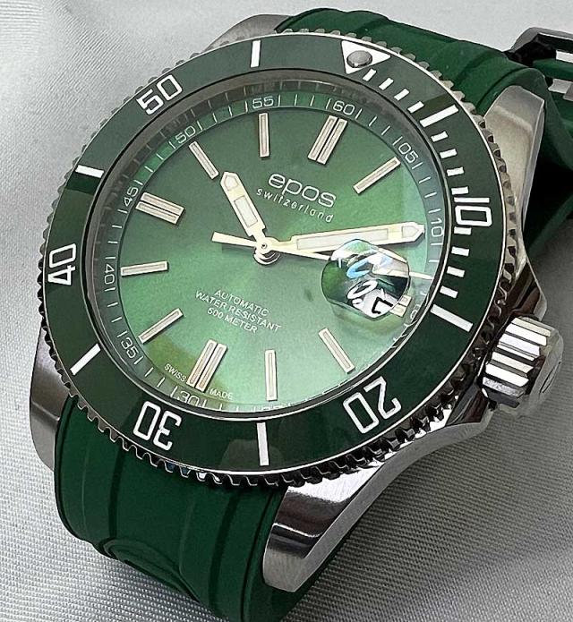 エポス メンズ腕時計 EPOS epos ダイバーズウオッチ 自動巻き 機械式 オートマチック 3504GRR 500M防水 グリーンダイヤル グリーンベゼル グリーンラバーベルト メンズウオッチ 越前打刃物プレゼント