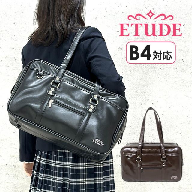 スクールバッグ 合皮 ブラウン ブラック クロ チャ etb-0041 ETUDE エチュード 合皮スクールバッグ 中学生 高校生 学生かばん 通学かばん 通学バッグ スクバ 女子中学生 女子高生 JK JC 女子 女の子 ガールズ ティーン 入学準備 入学祝い 通学 A4サイズ B4サイズ 収納可能