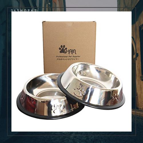 ◆商品名:THAIN ペットボウル お皿 犬 猫 ペット用 ステンレス製 こぼれにくい 餌入れ 水入れ 滑り止め 犬食器 猫皿 可愛い肉球柄 2点セット (M)