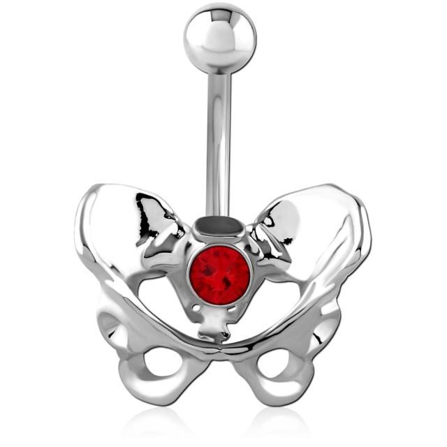 [14G カーブバーベル ボディピアス] 骨盤 へそピアス 14ゲージ ヘソピアス 臍ピアス メンズ レディース ボディーピアス バーチカル プレゼント サージカルステンレス316L製 人体の模型 赤色 レッド ジュエル ストーン 石付き ジルコニア おもしろい 面白い メンズ レディース