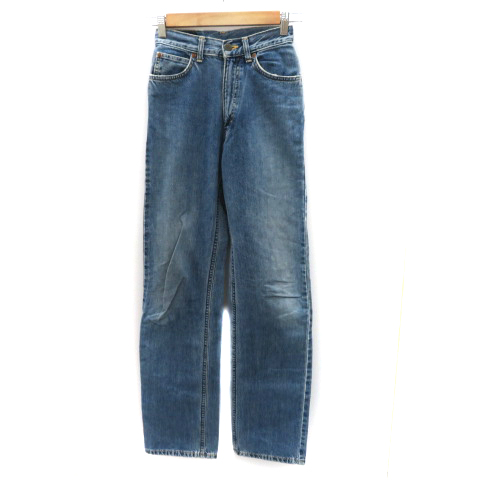 【中古】リー デニムパンツ ジーンズ ストレートパンツ ロング丈 ウォッシュ加工 無地 27 ライトブルー レディース