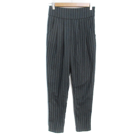 【中古】アナップ タックパンツ テーパードパンツ ロング丈 ストライプ柄 F ダークグリーン 緑 白 レディース