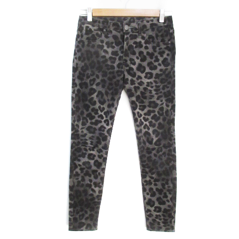 【中古】メゾンドリーファー デニムパンツ ジーンズ スキニーパンツ ロング丈 ヒョウ柄 24 グレー 黒 レディース