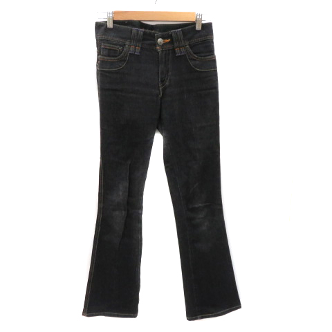 【中古】サムシング ヴィーナス ジーン デニムパンツ ジーンズ フレアパンツ ロング丈 28 黒 ブラック レディース