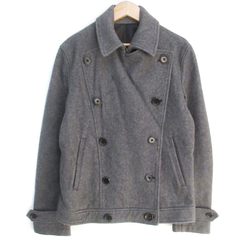 【中古】シップスジェットブルー Pコート ピーコート ショート丈 ステンカラー ダブルボタン M 杢グレー レディース