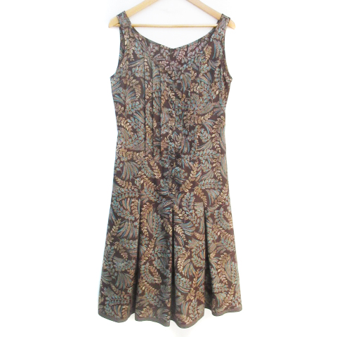 【中古】コムサデモード フレアワンピース ミモレ丈 ノースリーブ Vネック 9 ダークブラウン 茶 ベージュ レディース