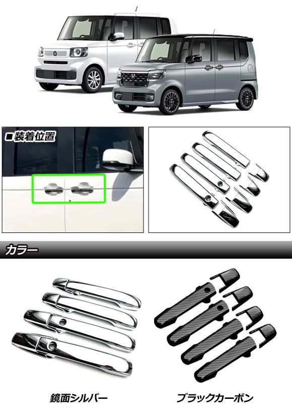ドアハンドルカバー ホンダ N-BOX/N-BOXカスタム JF系(JF5/JF6) 2023年10月〜 鏡面シルバー ABS製 入数:1セット(8個) AP-XT2448-KSI
