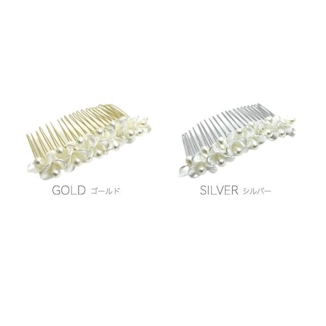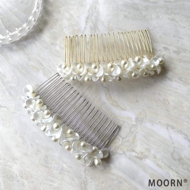 コーム 髪飾り 花 パール ヘアコーム ブライダル レディース ヘアアクセサリー ヘッドドレス 夜会巻き 髪飾り キラキラ ゴールド 金 シルバー 銀 結婚式 パーティー 二次会 披露宴 お呼ばれ 和装 着物 ウェディング【MOORN/モーン】MRN-COM23050
