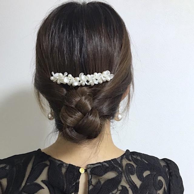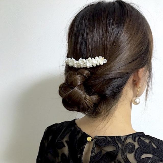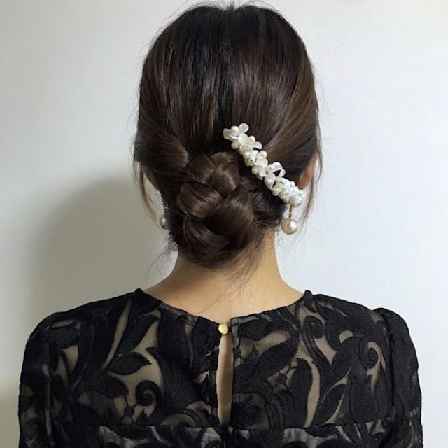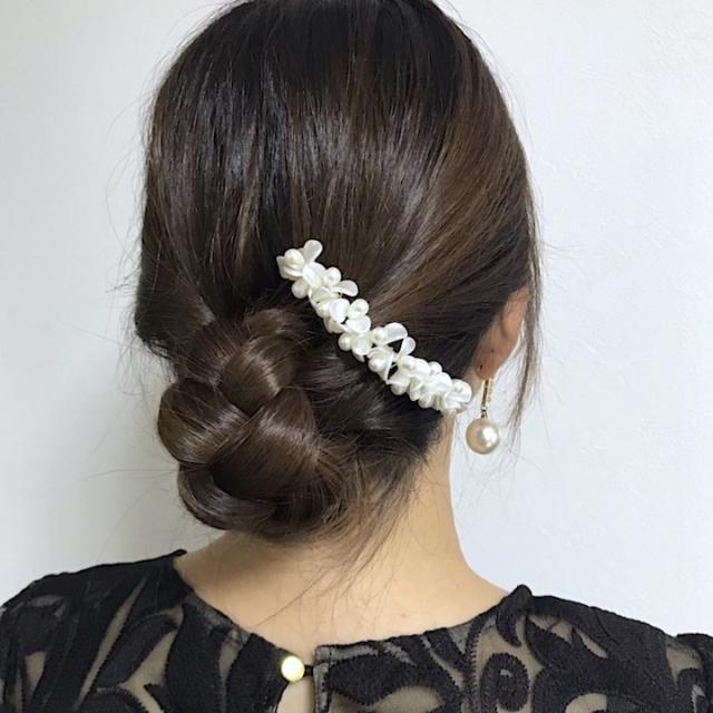 ドレスや和装のヘアアレンジ、夜会巻きのポイントにお使いいただけます。