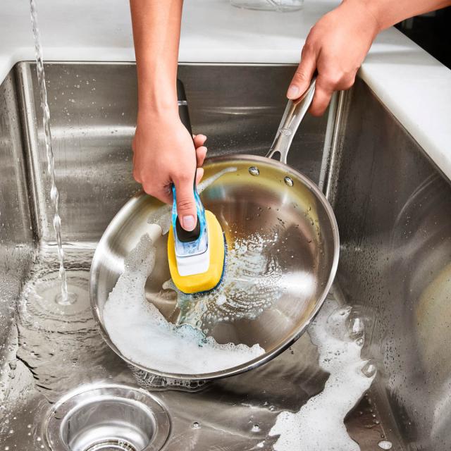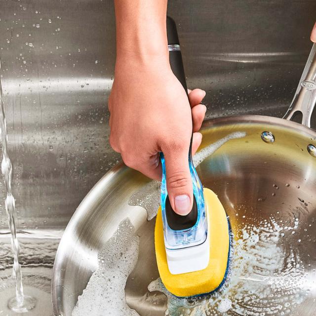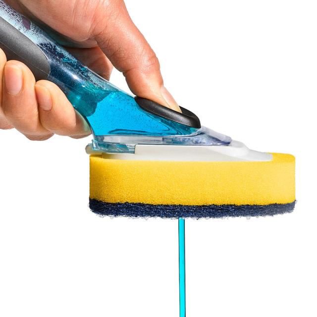 ワンプッシュで洗剤が出てくる画期的なハンドル付きのスポンジ