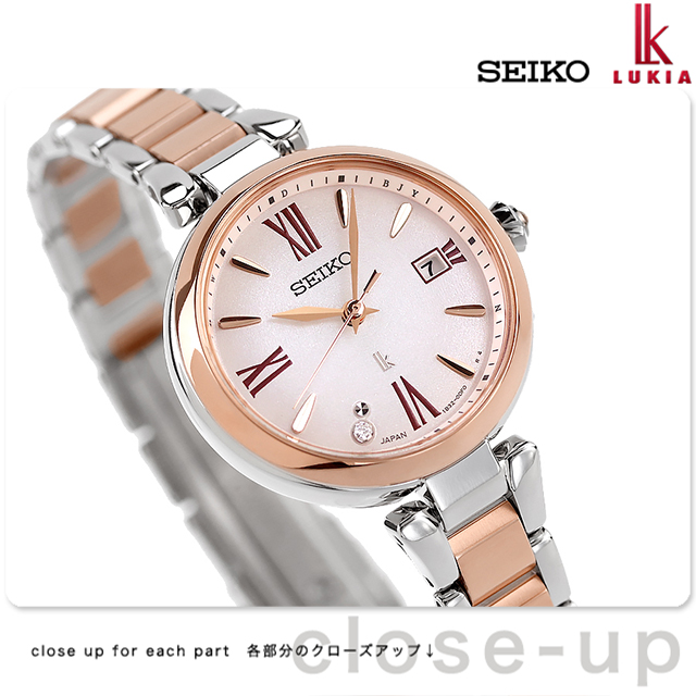 正規品 7年保証キャンペーン 送料無料 セイコー ルキア 2024年春夏 チタン ラボグロウンダイヤモンド 日本製 レディース 腕時計 SSQW082 SEIKO LUKIA Grow New Model アナログ ピオニーピンク ピンクグラデーション ピンクゴールド ◆セイコールキアの「LUKIA Grow」から、みずみずしく咲く芍薬(ピオニー)をデザインモチーフにしたソーラー電波の新デザインが登場。カーブガラスを含めた丸みのあるケースフォルムは、芍薬の柔らかい世界観をイメージしました。一番のデザインポイントは、ルキア新開発の”Drop Dial(ドロップダイヤル)。中心に向かってほんのりと膨らむ球面形状が特徴です。芍薬がみずみずしく花開くときの、花びらにのったしずくの艶やかさを表現。時間を見るたびに優しい気持ちになれます。ダイヤルの7時位置には、花のしずくを表現したワンポイントのラボグロウン・ダイヤモンドが輝きます。(地球環境に配慮し、採掘を必要としないダイヤモンドです。) 発売日:2024年2月発売