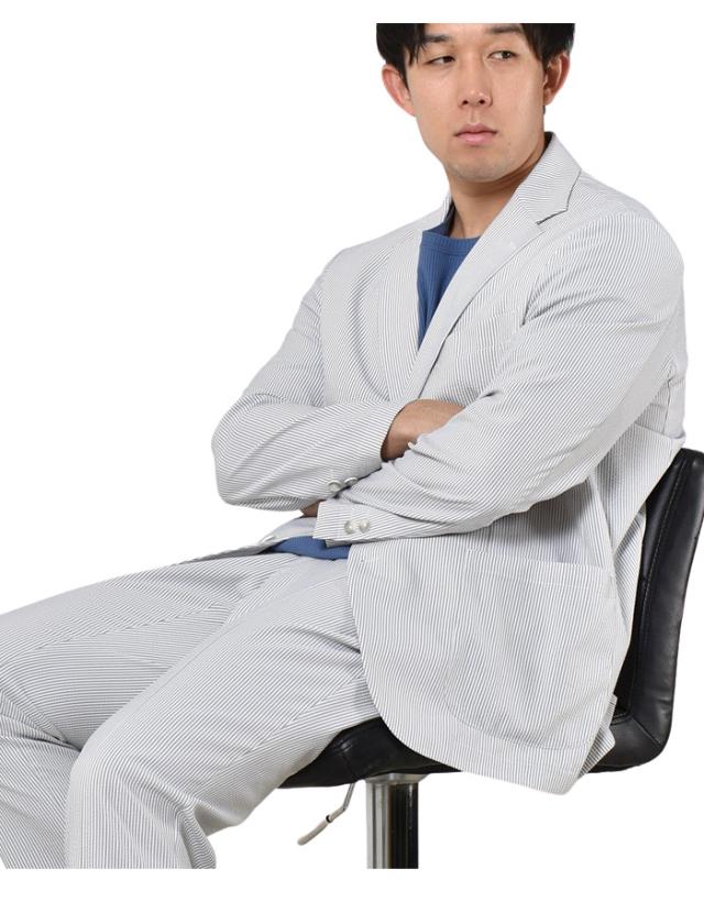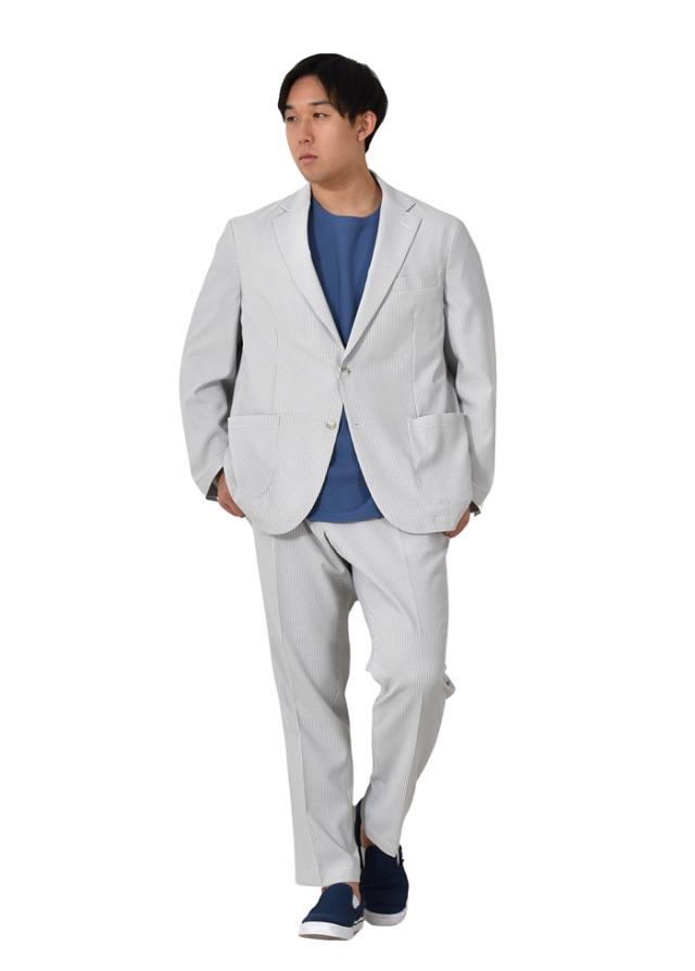 大きいサイズ メンズ SARTORIA BELLINI セットアップ シアサッカー ストレッチ ジャケット 軽量 ウォッシャブル イージーケア azjs2418-se1
