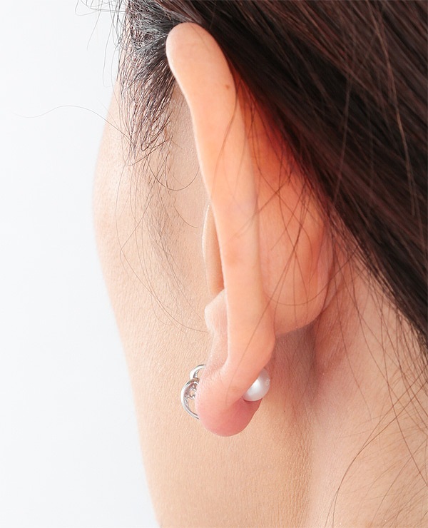 応用編として、キャッチを耳の表側装着して
