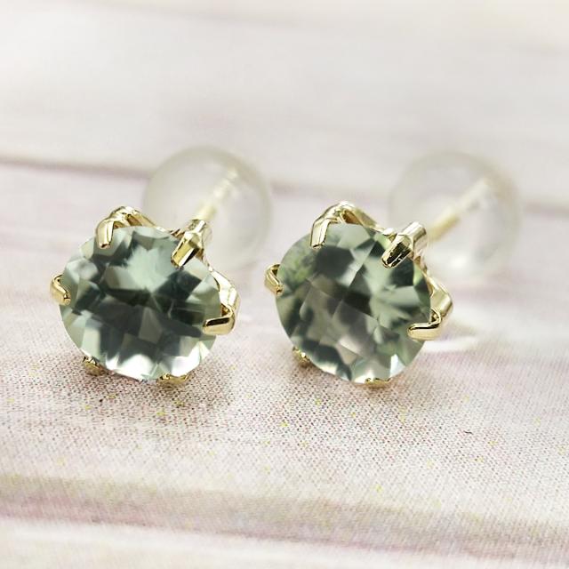 グリーンアメジスト プラシオライト ピアス 送料無料 K10YG イエローゴールド 5mm 薄型6本爪 スタッド シンプル 両耳ペア