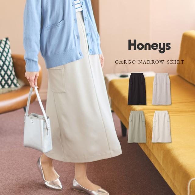 ボトムス スカート ナロースカート レディース 黒 無地 ツイル素材 春新作 夏新作 秋新作 冬新作 SALE セール Honeys ハニーズ カーゴナロースカート