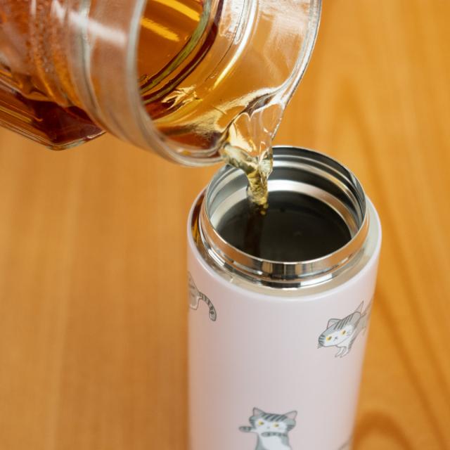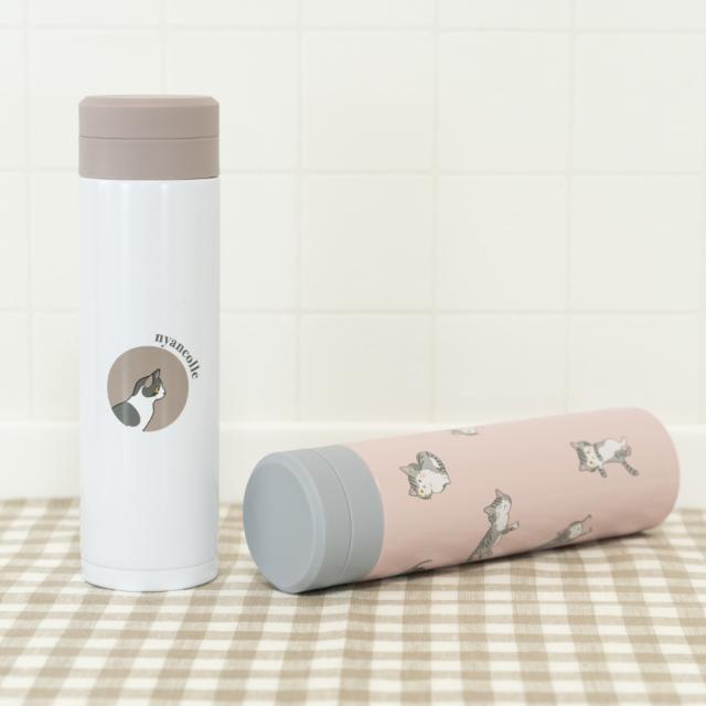 猫のイラストが愛らしいステンレス製のマグボトルです。かわいいデザインなので、プレゼントにもおすすめです。蓋とボディカラーが2トーンになっているのがお洒落です。