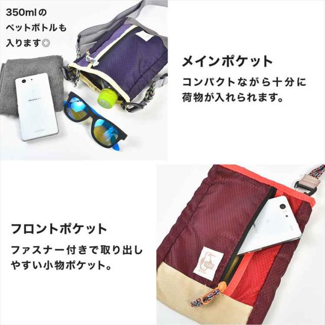 ショルダーバッグ CHUMS チャムス メンズ レディース 大人 アウトドア ブランド 斜めがけ ナイロン 防水 丈夫 頑丈 サコッシュ スリング シザーバッグ ミニバッグ サブバッグ ポーチ 小物入れ 54268 コンパクト 薄型 釣り レジャー 派手 ブルー 青 レッド 赤 パープル 紫