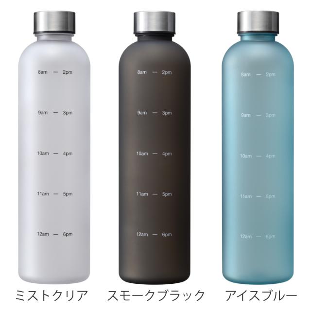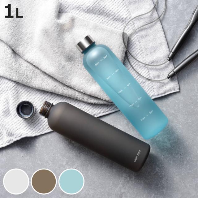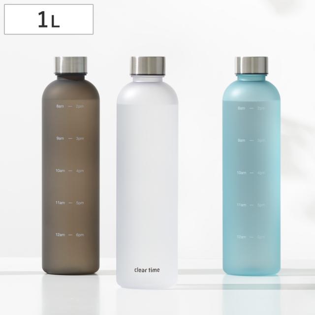 水筒 1L クリアタイム リマインダーボトル ( 常温 直飲み スクリュー クリアボトル マグボトル スポーツボトル 目盛り付き マグ ボトル 透明 クリア 軽量 時間メモリ付き 水筒 1リットル)