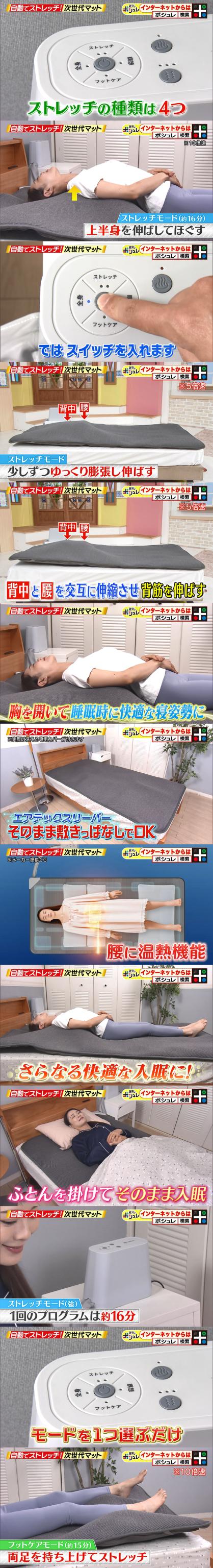 お使いの寝具にのせるだけ!自動で全身のストレッチをしてくれるマットレスパッド