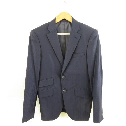 【中古】ハードレックス HERDREX テーラードジャケット シングル ストライプ 紺 Y94 *A93 メンズ