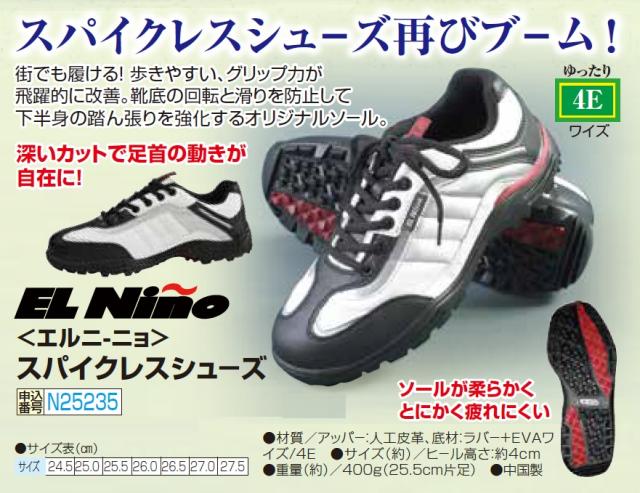 エルニーニョ スパイクレスシューズ ホワイト ワイズ 4E スニーカー メンズ 紳士 シニア 靴 白 カジュアル シニアファッション 40代 50代 60代 70代 80代 男性 スポーツ ゴルフ スニーカー 父の日 お父さん ゴルフシューズ ゴルフ靴 オシャレ ori p17113 p20034 p25235