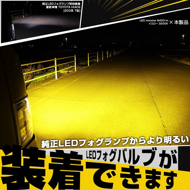2)イエローLEDフォグバルブを装着→存在感のある濃い黄色「ディープイエロー」に。