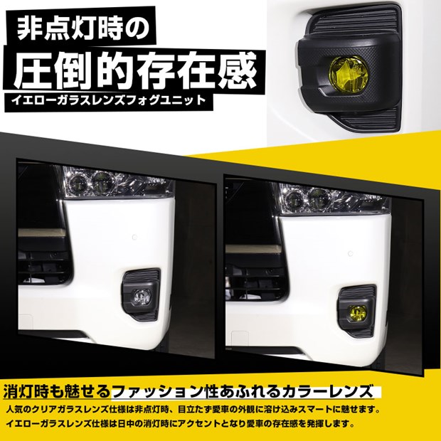 イエローガラスレンズだから日中の消灯時でも愛車の存在感を更にアップさせます。