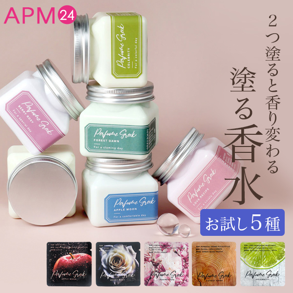 お試し5種香水セット ★ そのまま塗っても、2つ塗り重ねても楽しめる、体に直接塗るタイプの香水です