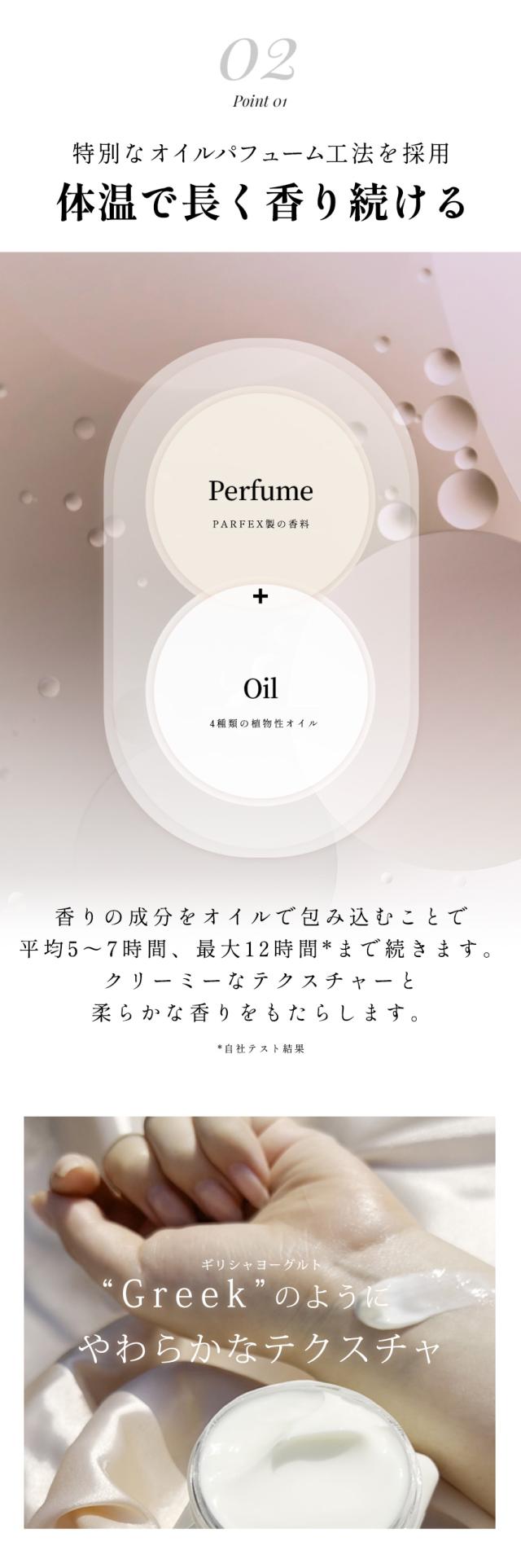 体や髪に少量直接塗るだけで、より長い間、上品に香りが立ちます。