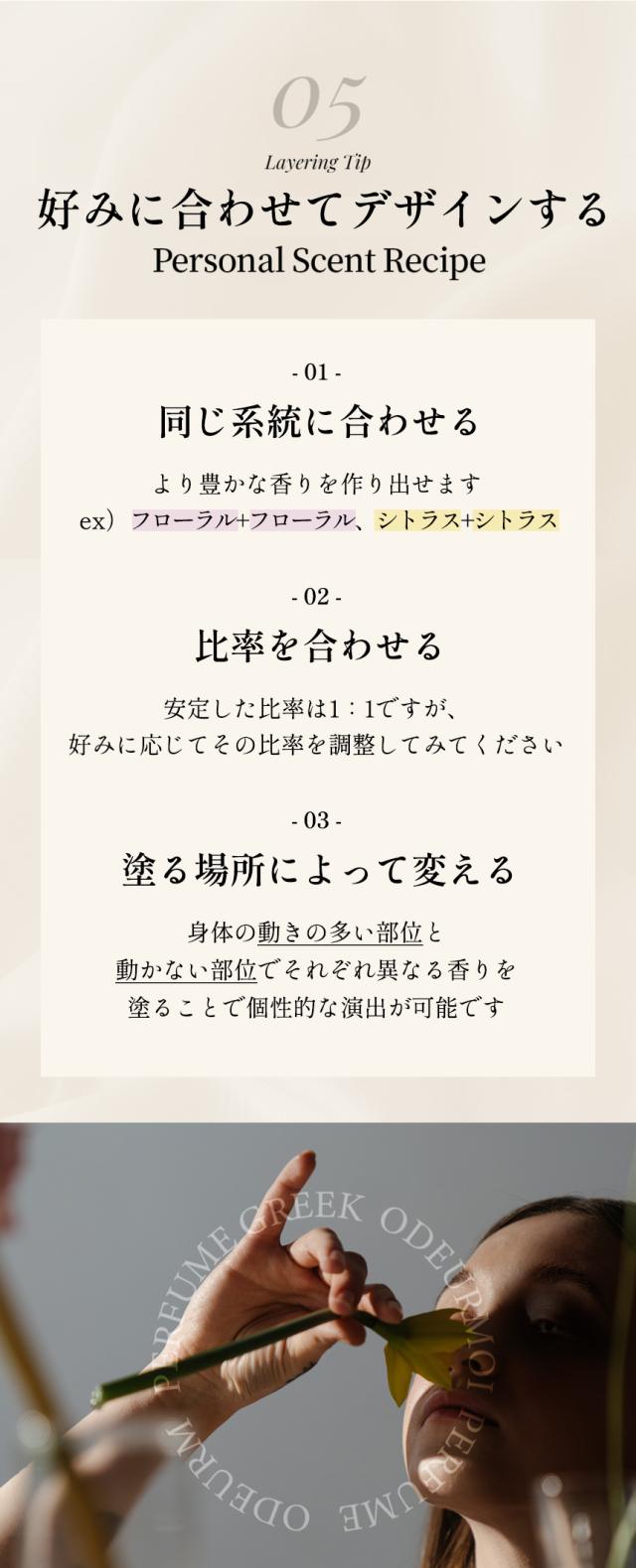 組み合わせ方、塗る順番で新しい香りを演出します。